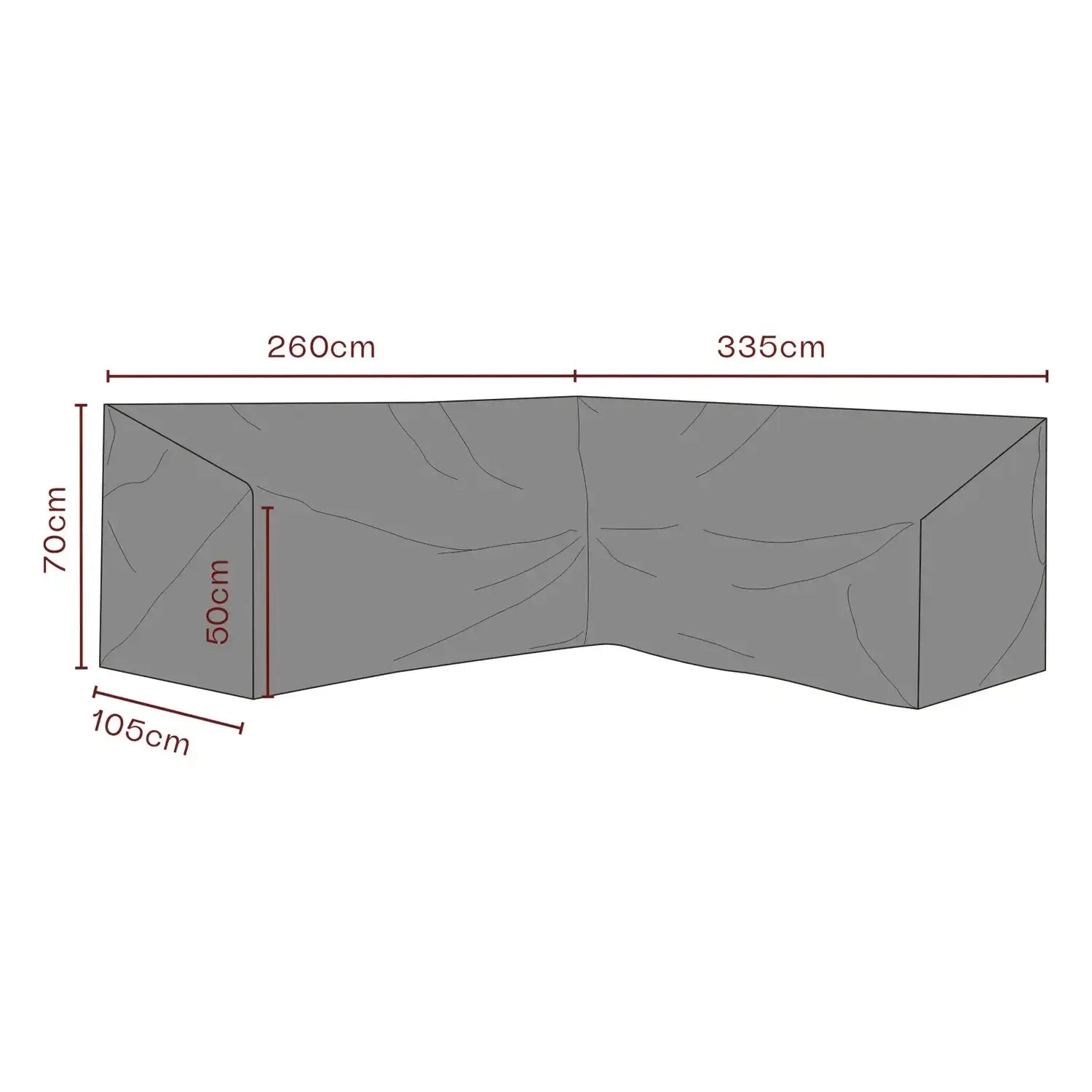 Möbelskydd för hörnsoffa i slitstark ripstop-polyester (210D) med TPU-beläggning på baksidan som gör att produkten andas och transporterar ut fukt. Överdraget är formsytt med sluttande framkant för att förhindra att vatten samlas. Från Brafab.
